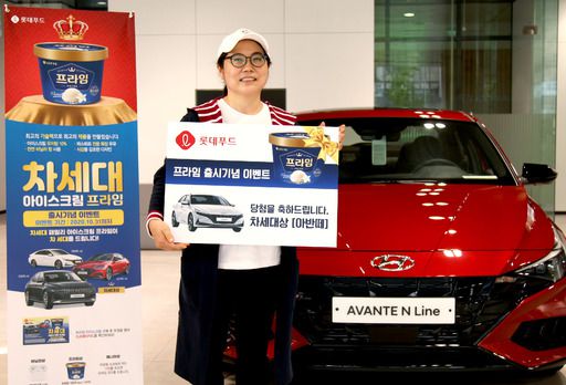 롯데푸드는 홈타입 프리미엄 바닐라 아이스크림 ‘프라임’ 론칭 이벤트의 자동차 경품 당첨자가 나왔다고 15일 밝혔다. 이번에 당첨된 차종은 아반떼로, 지난달 쏘나타 당첨에 이은 것이다.