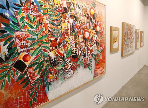 (서울=연합뉴스) 이재희 기자 = 15일 서울 종로구 안녕인사동 센트럴뮤지엄과 인사동 문화지구 전역에서 열리는 '2020 인사동문화축제'가 개막했다. 가나아트, 표갤러리 등 국내 주요 갤러리를 비롯해 총 60여 개 국내외 갤러리의 작품 4천여 점을 선보이며 각종 체험행사와 명사들의 강연도 마련됐다. 사진은 이날 전시장에 걸린 가수 조영남의 작품들. 2020.10.15