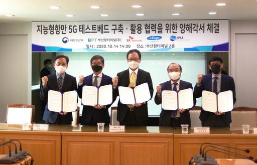 SK텔레콤은 해양수산부, 부산항터미널, 선박해양플랜트연구소, IPTL사업추진단(부산대학교 주관) 등과 ‘지능형 항만 5G 테스트베드 구축 활용·협력’ 양해각서를 14일 체결했다고 밝혔다.