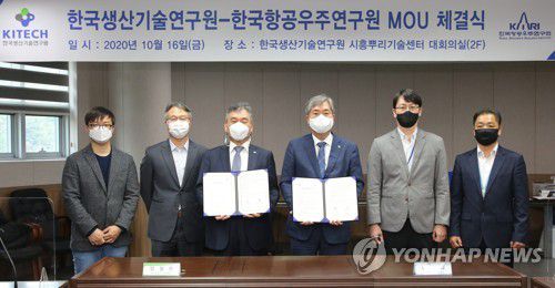 (천안=연합뉴스) 김소연 기자 = 한국생산기술연구원(생기원)은 한국항공우주연구원(항우연)과 함께 3차원(3D) 프린팅 기술을 활용한 항공우주 부품 개발에 나선다고 16일 밝혔다.