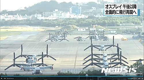 【서울=뉴시스】주일미군 수직이착륙기 오스프리의 모습.(사진출처: NHK) |