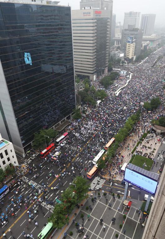 서울 도심 광복절 집회 (서울=연합뉴스) 윤동진 기자 = 15일 오후 서울 세종대로에서 사랑제일교회·자유연대 등 정부와 여당 규탄 집회 참가자들이 길을 가득 메우고 있다. 서울시의 집회금지명령으로 집회 대부분이 통제됐으나, 전날 법원의 집행정지 결정으로 종로구 동화면세점 앞과 중구 을지로입구역 등 2곳에서는 개최가 가능해지면서 인파가 몰렸다. 2020.8.15 mon@yna.co.kr/2020-08-15 15:42:23/ <저작권자 ⓒ 1980-2020 ㈜연합뉴스. 무단 전재 재배포 금지.> |