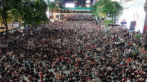 이미 랏차쁘라송 네거리에는 수천 명의 집회 참석자들이 모였다.
