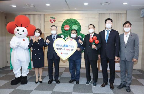 사랑의 하트 준비위원회와 사랑의열매가 함께 준비한 이번 마스크는 신종 코로나바이러스 감염증(코로나19) 장기화 등으로 마스크 구매에 어려움을 겪는 노인, 노숙인을 비롯해 면역력이 부족한 이웃에게 지원된다. 송해는 사랑의 하트 발족 준비위원회 명예위원장이다.