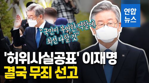 (서울=연합뉴스) 이재명 경기도지사가 16일 공직선거법상 허위사실 공표 혐의와 관련, 파기환송심에서 무죄 판결을 받으면서 그의 대선 행보는 더욱 탄력을 받을 것으로 보입니다.