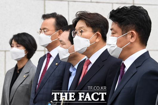 [더팩트ㅣ장우성 기자] 국민의힘 의원들은 16일 대검찰청을 방문해 검찰총장 직속 옵티머스 특별수사팀 구성을 요구했다.