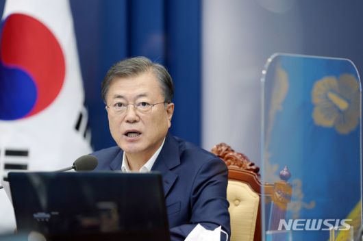 [서울=뉴시스박영태 기자 = 문재인 대통령이 12일 오후 청와대 여민관에서 열린 수석·보좌관회의에 참석해 발언을 하고 있다. 2020.10.12. since1999@newsis.com |