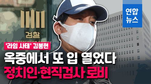 (서울=연합뉴스) '라임자산운용(라임) 사태'의 주범으로 지목된 김봉현 전 스타모빌리티 회장이 16일 '옥중 입장문'을 통해 야권 인사에게도 수억 원 로비를 벌였으며 현직 검사 3명에게도 1천만 원 상당의 접대를 한 적이 있다고 폭로했습니다.