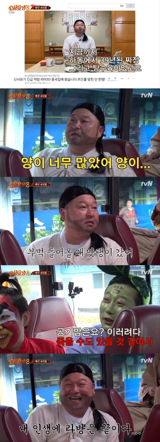 16일 방송된 tvN '신서유기8'의 기상 미션은 지리산 계곡물 튜브 위에 올라타기였다.