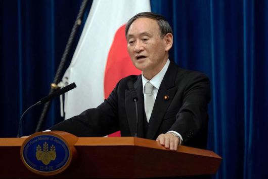 스가 요시히데 일본 총리가 지난 9월 16일 총리 선출 뒤 기자회견을 갖고 있다. /로이터 연합뉴스 |