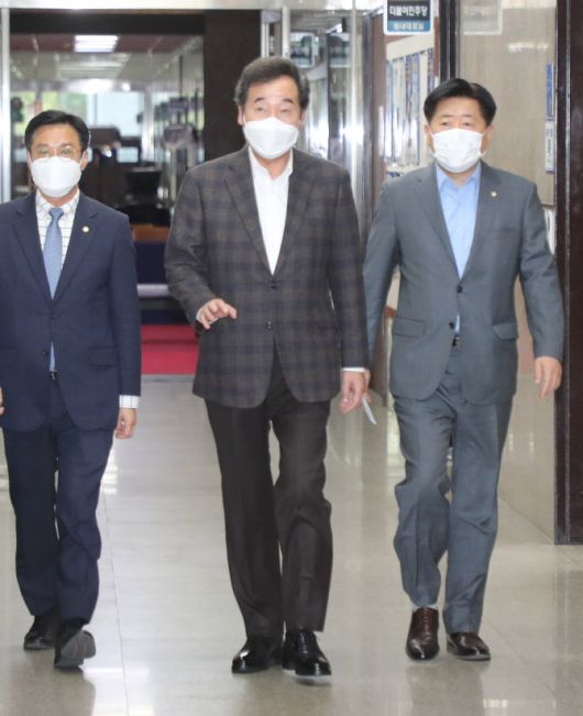 이낙연 더불어민주당 대표가 18일 오후 국회에서 스가 요시히데 일본 총리의 측근인 일한의원연맹의 가와무라 다케오 간사장과 비공개 면담을 갖기 위해 국회 본청 당대표실로 향하고 있다. (사진=연합뉴스) |