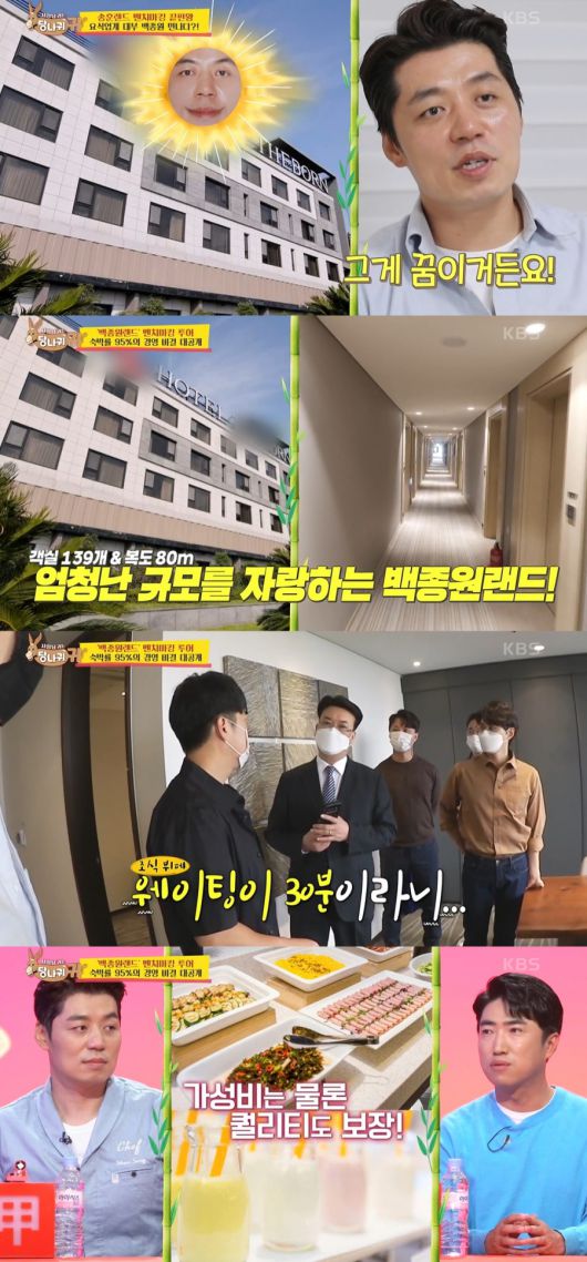장동민은 "코로나19 시국에도 숙박률이 95%라고 한다"고 놀라워했고, 송훈은 "가격 경쟁력에 있어서 저는 범접할 수가 없다. 저걸 어떻게 이기냐면서도 "백종원의 호텔을 보고 큰 각오가 생겼고, 좋은 계기가 됐다"고 많은 것을 배웠다고 했다.