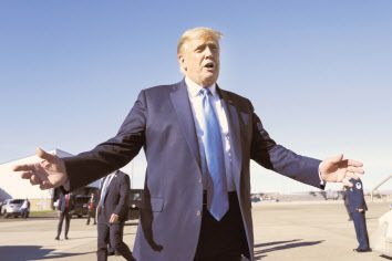 도널드 트럼프 미국 대통령이 18일(현지시간) 네바다주 유세 일정을 소화하는 와중에 언론 카메라 앞에 서서 이야기를 하고 있다. [AP] |