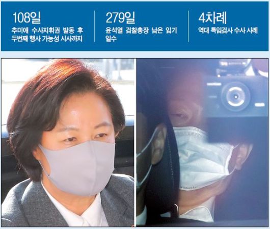 하지만 윤 총장은 “법무부 발표 내용은 전혀 사실에 근거하지 않은 내용”이라며 “검찰총장에 대한 중상모략과 다름없다”고 강하게 반발하는 상황이다. 지난 7월 역대 2번째 법무부장관의 수사지휘권 발동 당시에도 윤 총장의 거취 문제가 부각됐지만 윤 총장은 주변에 ‘물러나지 않는다’는 뜻을 밝힌 것으로 전해졌다. 내년 7월24일 임기만료일까지 윤 총장의 임기는 19일 현재 279일이 남았다.