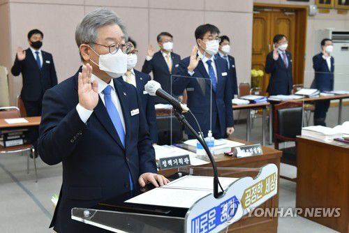같은 당 김형동 의원은 이 지사의 페북 글을 지목하며 "(국회의원들을) 졸지에 청계천에서 불법 장사하는 상인들과 등치화했다"며 "헌법과 법률을 부정하는 것 같은데 그 부분을 명확히 해달라. 도지사로서 국감을 안 받겠다는 것은 헌법 개정 문제"라고 따지고 들었다.