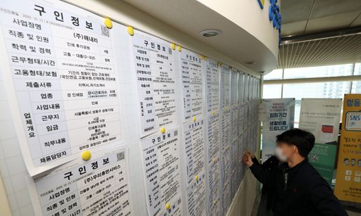 지난 16일 오후 서울 성동구 성동구청 취업게시판에 구인정보 안내문이 붙어 있다. 뉴시스 |