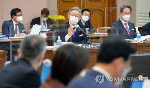 (수원=연합뉴스) 이우성 류수현 기자 = 19일과 20일 이틀 연속 열린 경기도 국정감사는 여권의 대선주자로 급부상한 이재명 경기도지사를 검증하는 청문회를 방불케 했다.