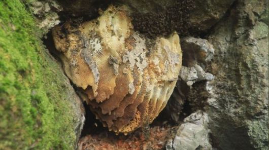 암벽 사이 석벌들이 모아놓은 석청 채취 과정 공개