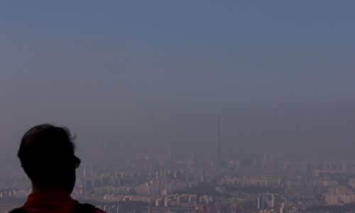 지난 20일 경기도 광주시 남한산성에서 바라본 서울 하늘에 미세먼지가 드리워져 있다. 연합뉴스 |