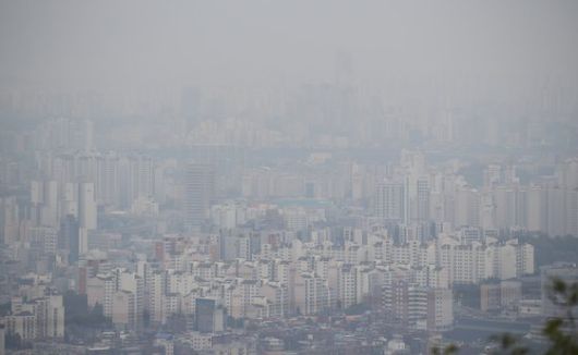21일 오전 서울 종로구 북악스카이웨이에서 바라본 도심이 뿌옇게 뒤덮인 모습. 연합뉴스 |
