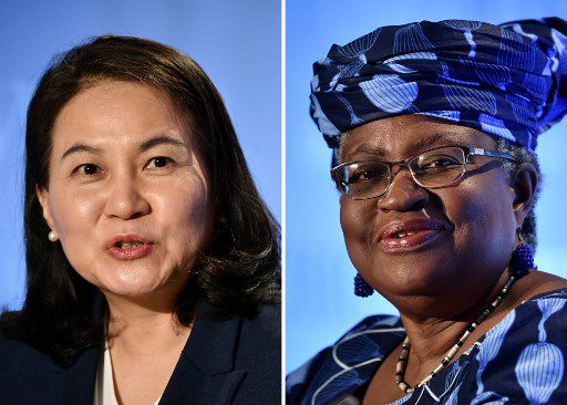 세계무역기구(WTO) 사무총장 선출 최종 후보에 오른 유명희 산업통상자원부 통상교섭본부장과 나이지리아의 응고지 오콘조-이웰라 후보/사진=AFP |
