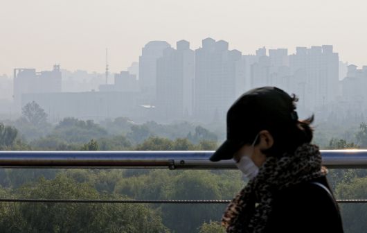 지난 19일 오전 서울 영등포구 여의도동 샛강생태공원에서 바라본 도심이 안개로 뒤덮여 있다. [연합] |