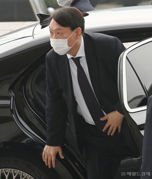 [헤럴드경제=이상섭 기자] 윤석열 검찰총장이 22일 오전 국회 법사위의 대검찰청에 대한 국정감사에 참석하기 위해 차에서 내리고 있다. |