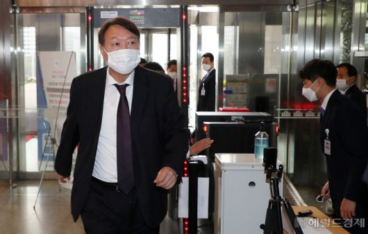 [헤럴드경제=이상섭 기자] 윤석열 검찰총장이 22일 오전 국회에서 열리는 국회 법사위의 국정감사에 출석하기 위해 국회 본청으로 들어서고 있다. |