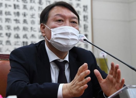 윤석열 검찰총장이 22일 오전 서울 여의도 국회 법제사법위원회에서 열린 대검찰청 국정감사에서 답변하고 있다. [연합] |