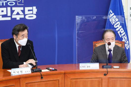 이 대표는 우선 도미타 대사에게 "한국과 일본 양국의 협력에 대한 이의는 있을 수 없다"며 "대사와 우리가 공동의 목표를 갖고 함께 노력하길 바란다"고 당부했다.