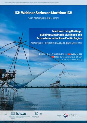 (서울=연합뉴스) 성도현 기자 = 문화재청 후원을 받는 유네스코아태무형유산센터는 오는 29~30일 유네스코아피아사무소와 함께 화상 토론회인 '2020 해양 무형유산 웨비나'를 연다.