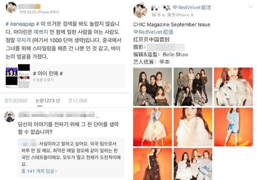 자신을 아이린과 작업한 적이 있는 스타일리스트라고 소개한 한 해외 스태프는 웨이보(微博·중국판 트위터)에 “실시간 검색어 보고 하나도 안 놀랐다”며 입을 뗐다.