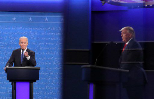 [머니투데이 윤세미 기자] 도널드 트럼프 미국 대통령과 조 바이든 민주당 대선 후보의 대선 전 마지막 TV토론이 22일(현지시간) 시작됐다.
