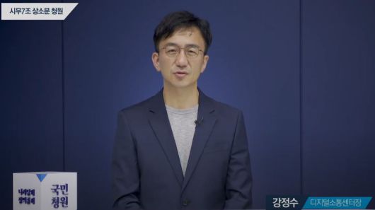 강정수 청와대 디지털소통센터장이 23일 시무7조 상소문 청와대 국민청원에 답변하고 있다. /청와대 |