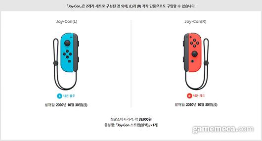 ▲ 30일부터 3만 9,900원에 판매되는 닌텐도 스위치 조이콘 (사진: 한국닌텐도 공식 홈페이지 갈무리) |