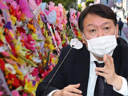 윤석열 검찰총장을 응원하는 화환이 서울 서초동 대검찰청 앞을 뒤덮는 진풍경이 펼쳐졌다.