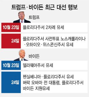 두 후보는 남은 선거 기간에도 경합주를 돌며 지지율 확보에 나설 방침이다. 트럼프 대통령은 26일 펜실베이니아주에서 열리는 두 차례의 집회에 참가한다. 트럼프 대통령은 민주당이 1962년부터 2012년까지 승리한 펜실베이니아주에서 2016년 힐러리 클린턴 전 민주당 대선후보를 이겼다. 27일에는 미시간·위스콘신주에서 유세를 이어갈 계획이다.