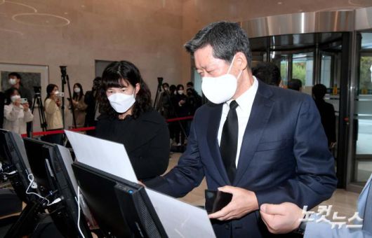 이건희 삼성그룹 회장이 별세한 25일 서울 강남구 삼성서울병원 장례식장에 마련된 이 회장의 빈소에 정몽윤 현대해상 회장이 들어서고 있다.