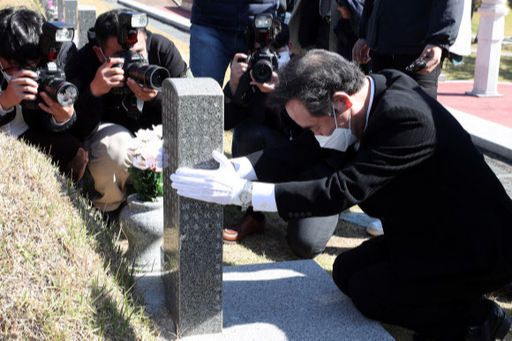더불어민주당 이낙연 대표가 지난 24일 광주 북구 운정동 국립 5·18민주묘지를 찾아 5·18 당시 시민군 대변인으로 활동한 윤상원 열사의 묘소를 참배하고 있다. 연합뉴스 |