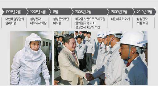이 회장의 경영 방식이 난관에 부딪힌 경우도 있다. 대표적인 것이 자동차산업이다. 이 회장은 1995년 숙원이던 자동차산업에 진출했지만 외환위기를 겪으며 실패했다. 삼성이 고수해 온 무노조 경영 원칙 또한 여론의 질타 대상이 됐다. “정치는 4류, 행정은 3류, 기업은 2류”라며 정계와 거리를 둔 이 회장이지만 정경유착에서 자유롭지 못했다.