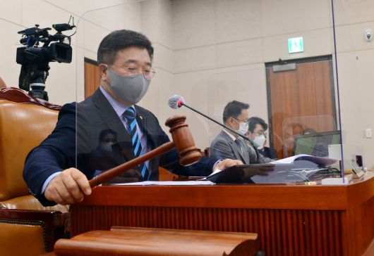 윤호중 국회 법사위원장이 7일 국회에서 열린 법제사법위원회 전체회의에서 의사봉을 두드리고 있다. [연합] |