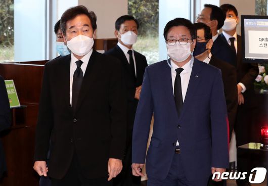 (서울=뉴스1) 사진공동취재단 = 이낙연 더불어민주당 대표가 26일 오전 고(故) 이건희 삼성그룹 회장의 빈소가 마련된 서울 강남구 삼성서울병원 장례식장에서 조문을 마친 뒤 건물을 나서고 있다. 2020.10.26/뉴스1eastsea@news1.kr[© 뉴스1코리아(news1.kr), 무단 전재 및 재배포 금지]