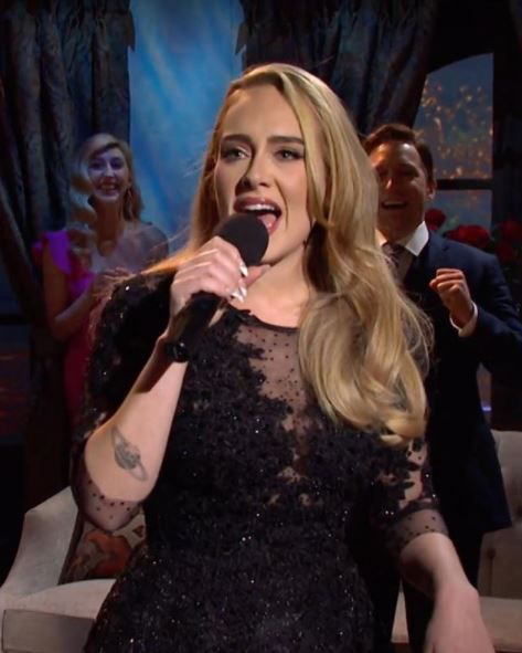 엔터테인먼트 위클리는 25일(현지시간) 공식 SNS에 아델이 'SNL'(Saturday Night Live)에 호스트로 출연해 노래를 부르고 있는 모습을 게재했다.