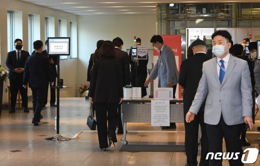 (서울=뉴스1) 사진공동취재단 = 26일 서울 강남구 서울삼성병원 장례식장에 마련된 고 이건희 삼성그룹 회장의 빈소를 찾은 조문객들이 이동하고 있다. 2020.10.26/뉴스1photo@news1.kr[© 뉴스1코리아(news1.kr), 무단 전재 및 재배포 금지]