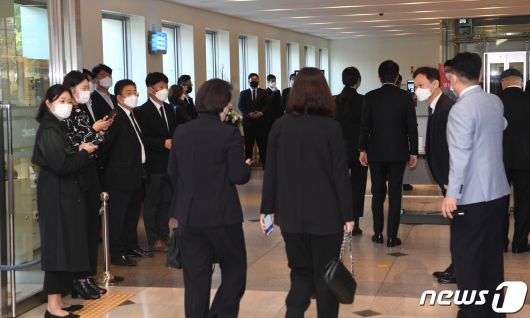 (서울=뉴스1) 사진공동취재단 = 26일 서울 강남구 서울삼성병원 장례식장에 마련된 고 이건희 삼성그룹 회장의 빈소가 조문객들로 붐비고 있다. 2020.10.26/뉴스1photo@news1.kr[© 뉴스1코리아(news1.kr), 무단 전재 및 재배포 금지]