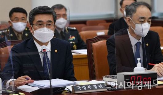 서욱 국방부 장관이 26일 국회에서 열린 국방위원회의에 국방부 등에 대한 종합국정감사에 출석, 의원들 질의에 답변하고 있다./윤동주 기자 doso7@ |