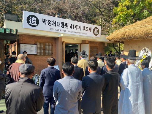 ‘박정희 전 대통령 서거 41주기 추모제’가 이날 오전 10시30분에 박 전 대통령 생가에서 엄수됐다. 이날은 박 전 대통령 기일이다. 생가 근처엔 ‘민족의 영웅, 박정희 대통령’ ‘겨레의 영도자시여. 이 나라 이 민족을 지켜주소서’ 등의 현수막이 걸렸다.