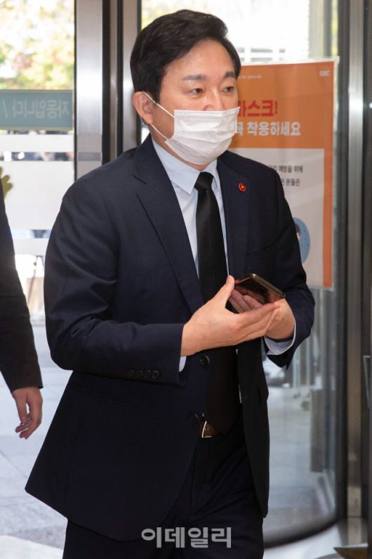 [사진공동취재단] 원희룡 제주도지사가 26일 서울 강남구 서울삼성병원 장례식장에 마련된 고 이건희 삼성그룹 회장의 빈소에 조문을 위해 들어서고 있다.