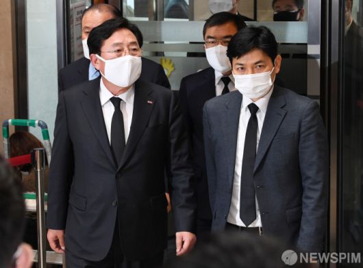 [서울=뉴스핌] 사진공동취재단 = 김기문 중소기업중앙회 회장(왼쪽)이 26일 오후 고(故) 이건희 삼성그룹 회장 빈소가 마련된 서울 강남구 삼성서울병원 장례식장에 들어서고 있다. 2020.10.26 photo@newspim.com 저작권자(c) 글로벌리더의 지름길 종합뉴스통신사 뉴스핌(Newspim), 무단 전재-재배포 금지