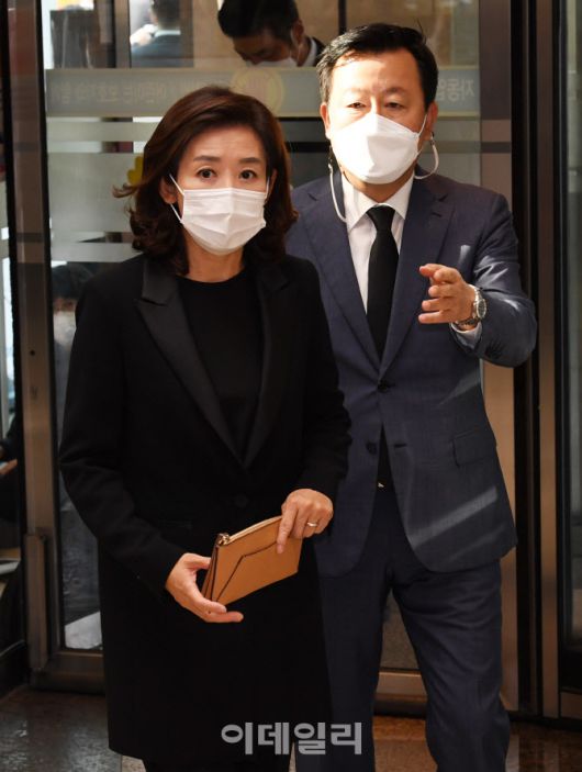[사진공동취재단] 나경원 전 의원이 26일 오후 고 이건희 삼성그룹 회장 빈소가 마련된 서울 강남구 삼성서울병원 장례식장에 들어서고 있다.
